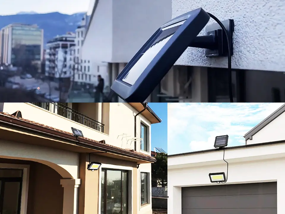 Split daje prawdziwą przewagę: panel i lampa nie muszą być w tym samym miejscu. Panel montujesz tam, gdzie jest najwięcej słońca — najlepiej na południowej elewacji, wyżej i bez cienia — żeby ładował maksymalnie. Lampa zostaje tam, gdzie potrzebujesz światła: wejście, alejka, podwórko, garaż.
